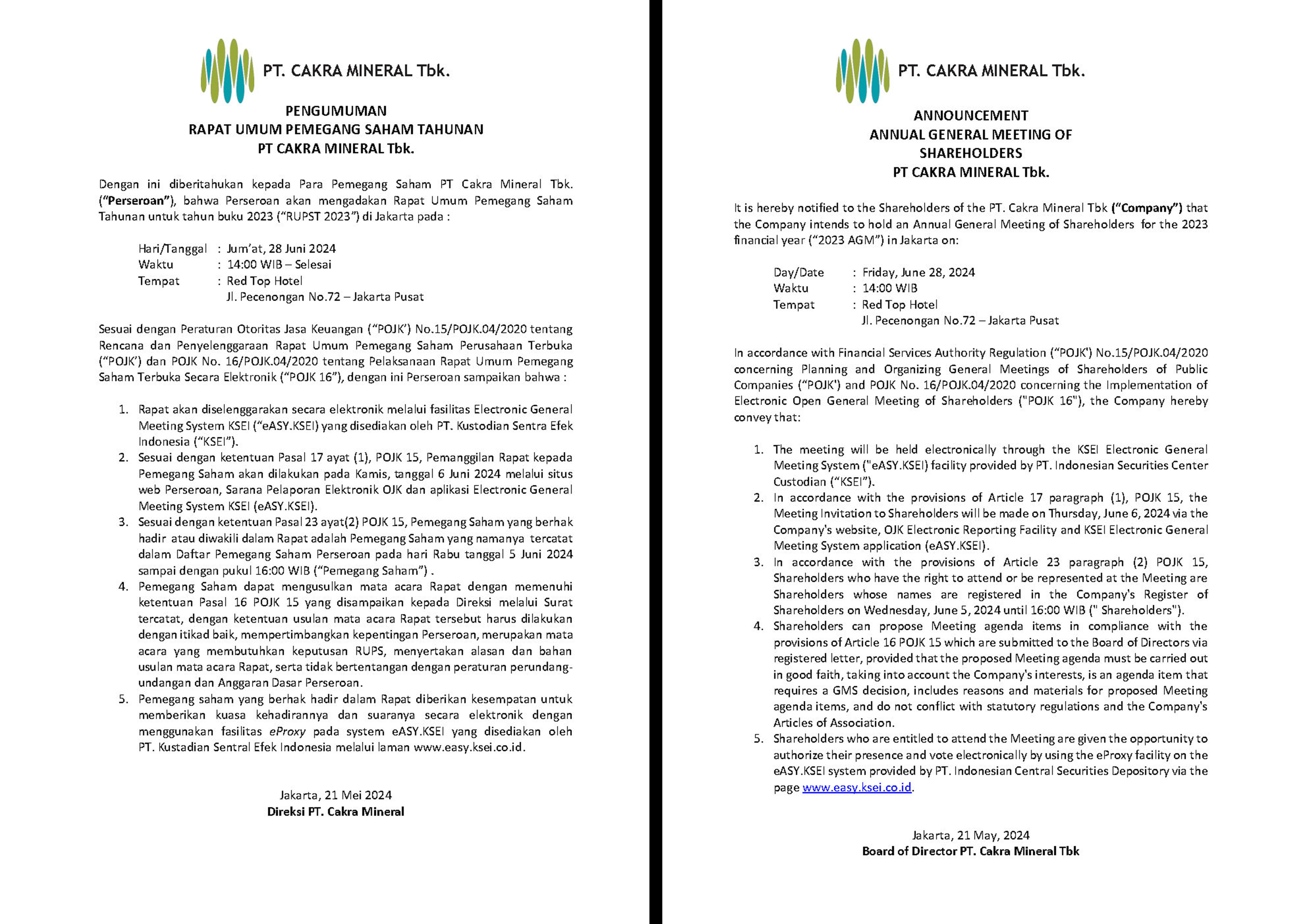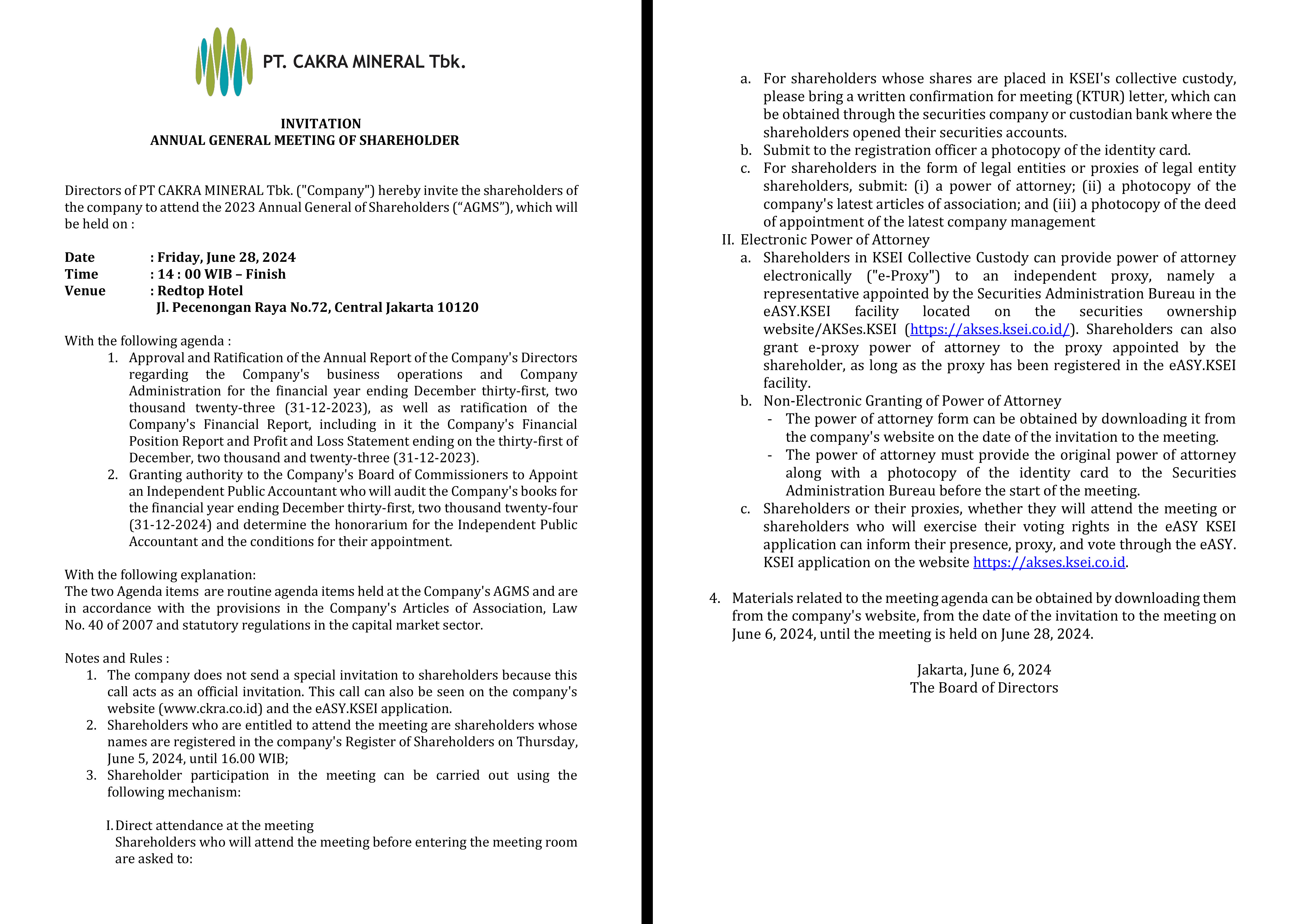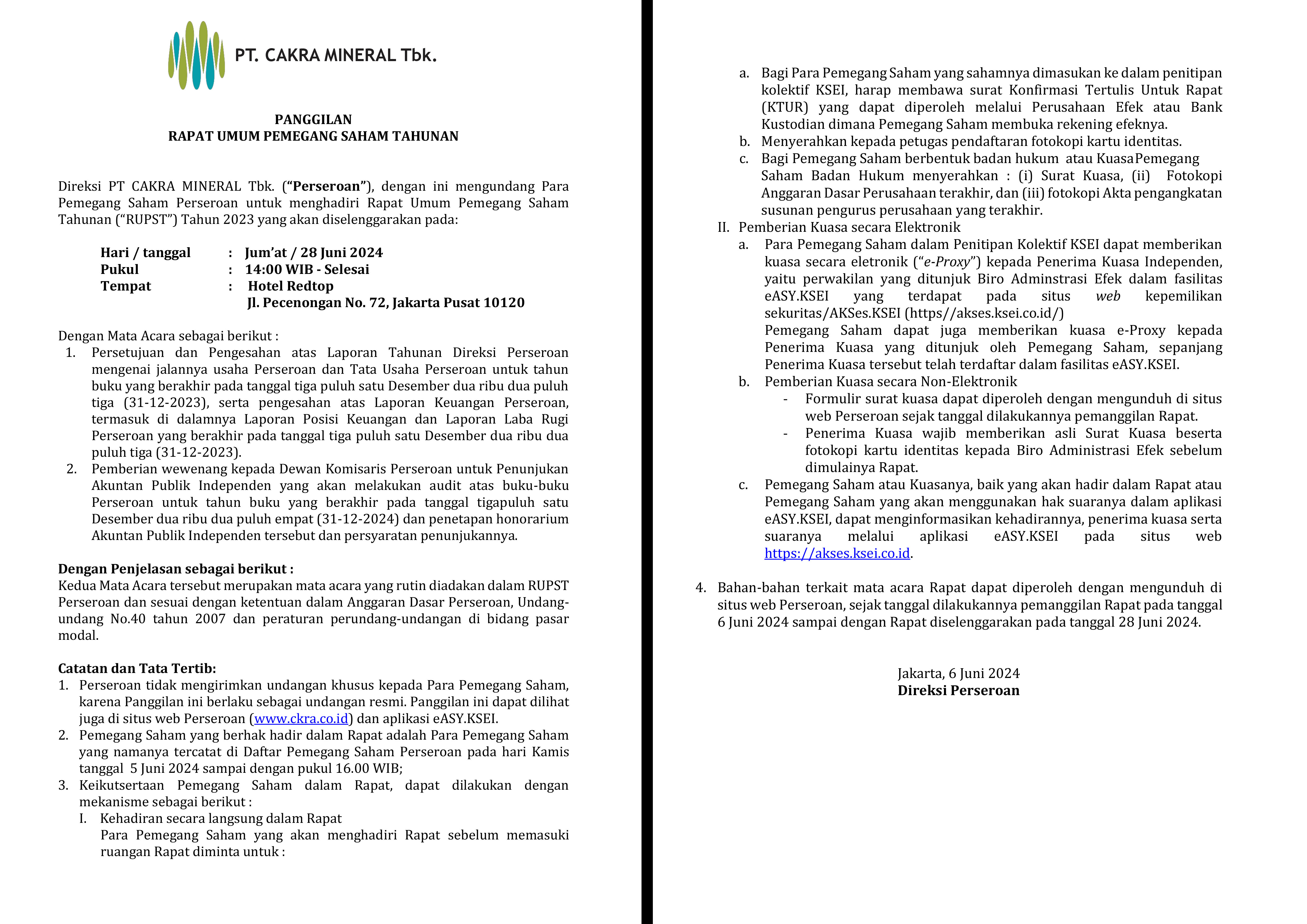 # ANNUAL REPORT 2024 PT. CAKRA MINERAL Tbk. # ANNUAL REPORT 2023 PT. CAKRA MINERAL Tbk. # Annual Report 2022 PT. Cakra Mineral Tbk # Annual Report 2021 PT. Cakra Mineral Tbk # Annual Report 2020 PT. Cakra Mineral Tbk # Annual Report 2019 PT. Cakra Mineral Tbk # Annual Report 2018 PT. Cakra Mineral Tbk # Annual Report 2013 PT. Cakra Mineral Tbk # Annual Report 2014 PT. Cakra Mineral Tbk